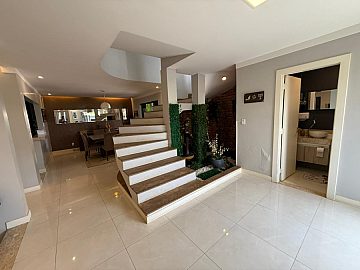 • Hall de entrada com lavabo, jardim e escada imponente
